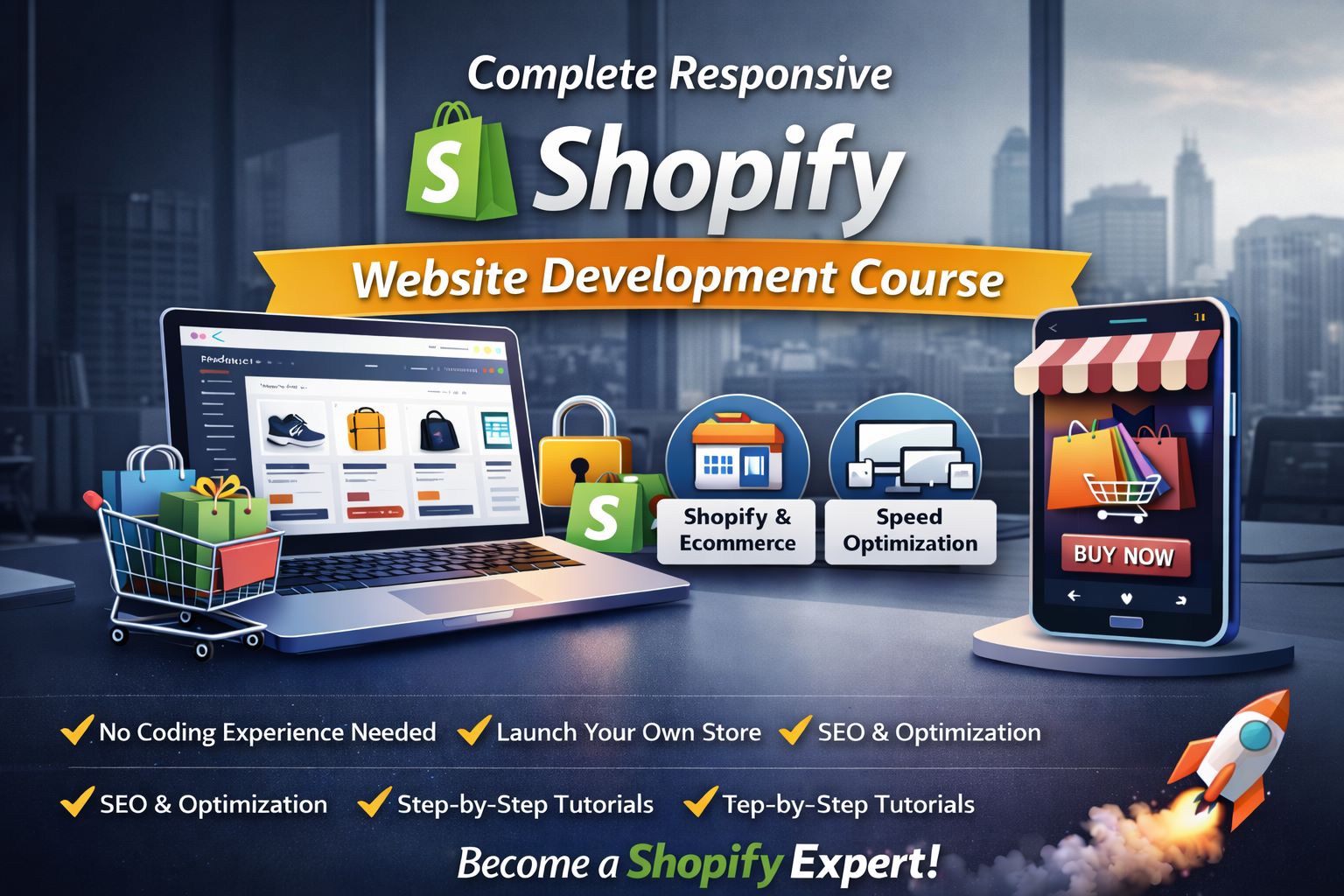 Master Shopify website development and learn how to build high-converting, fully responsive online stores from scratch. This complete course is designed for beginners to advanced learners who want to create professional Shopify stores for clients or their own eCommerce businesses.